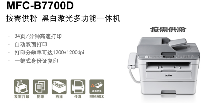 兄弟( brother) 黑白激光打印復(fù)印掃描一體機 MFC-B7700D按需供粉 雙面 標配+1個原裝粉盒