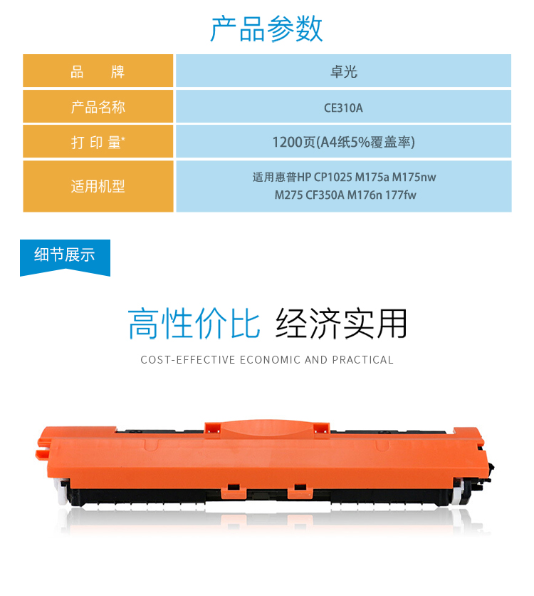 卓光 CE310A 黑色硒鼓墨粉盒(適用惠普m176n硒鼓mfp m177fw cp1025nw m176n 佳能lbp7010c7018c crg329打印機(jī)粉盒墨盒)