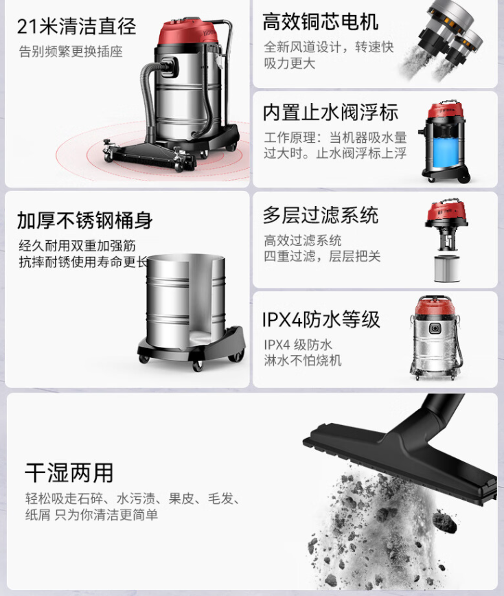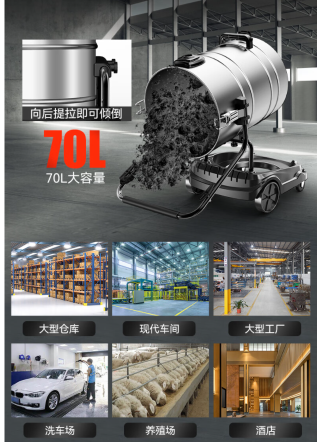 > 電器設(shè)備 > 空氣凈化設(shè)備 > 揚(yáng)子(YANGZI)3500W大功率70L強(qiáng)力大容量吸塵器工業(yè)大型桶式吸塵機(jī)商用大吸力酒店工廠車間推吸大地刷粉塵機(jī)