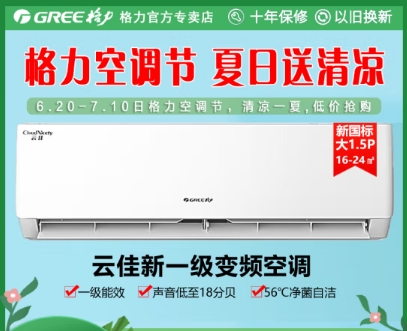 > 電器設(shè)備 > 空調(diào)機(jī) > 格力空調(diào)云佳新一級(jí) 1.5匹變頻冷暖掛機(jī) 高溫自清潔節(jié)能省電 18分貝 獨(dú)立除濕 KFR-35GW/皓雪白防直吹 大1.5匹 一級(jí)能效